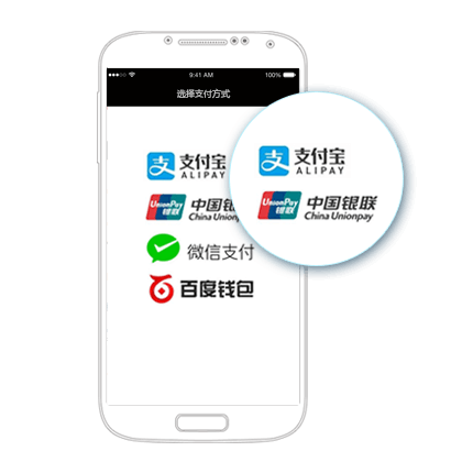 网页支付,为iOS/Android原生/H5 App提供支付解决方案:支持微信支付、支付宝支付、银联手机支付、百度钱包等。